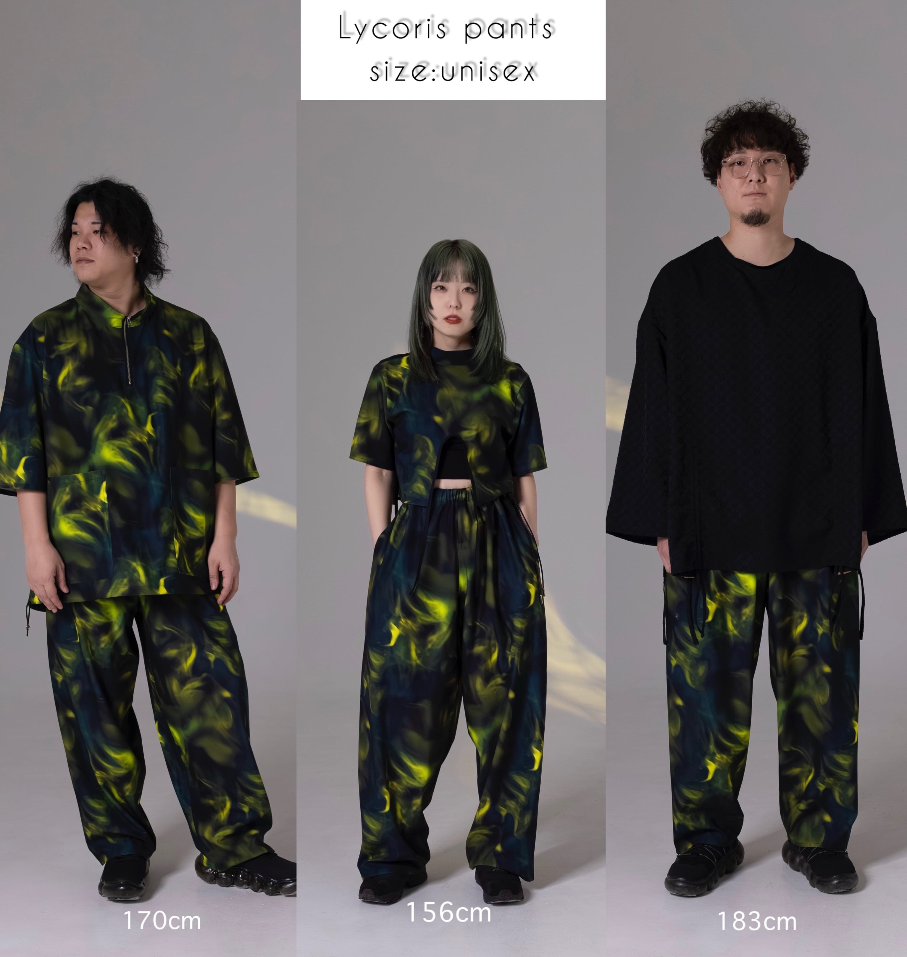 〜180cmまでの方はunisexで心地よく着用できます。女性はハイウェストで、男性はお腹から腰ではくことで、同じサイズでも幅広く着用して頂けます。